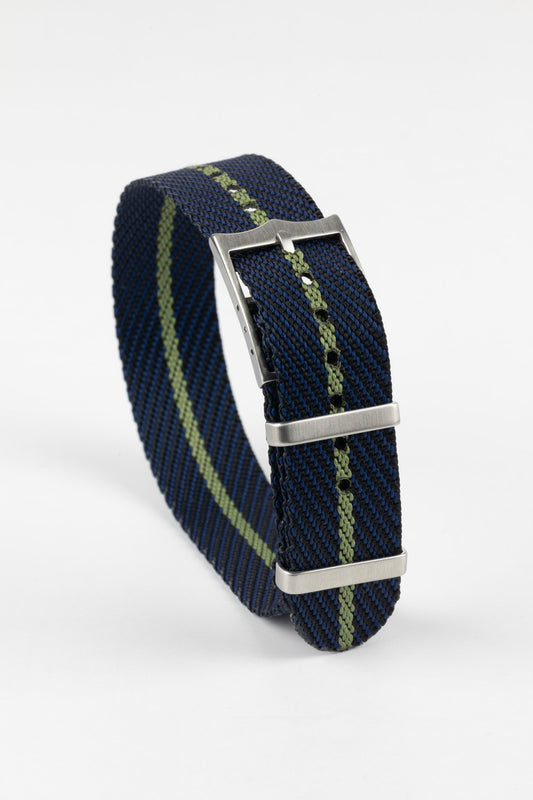 Tudor Style - Woven Nylon Single Pass Strap - Black, Blue & Green Stripe