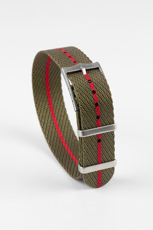 Tudor Style - Woven Nylon Single Pass Strap - Khaki & Red Stripe